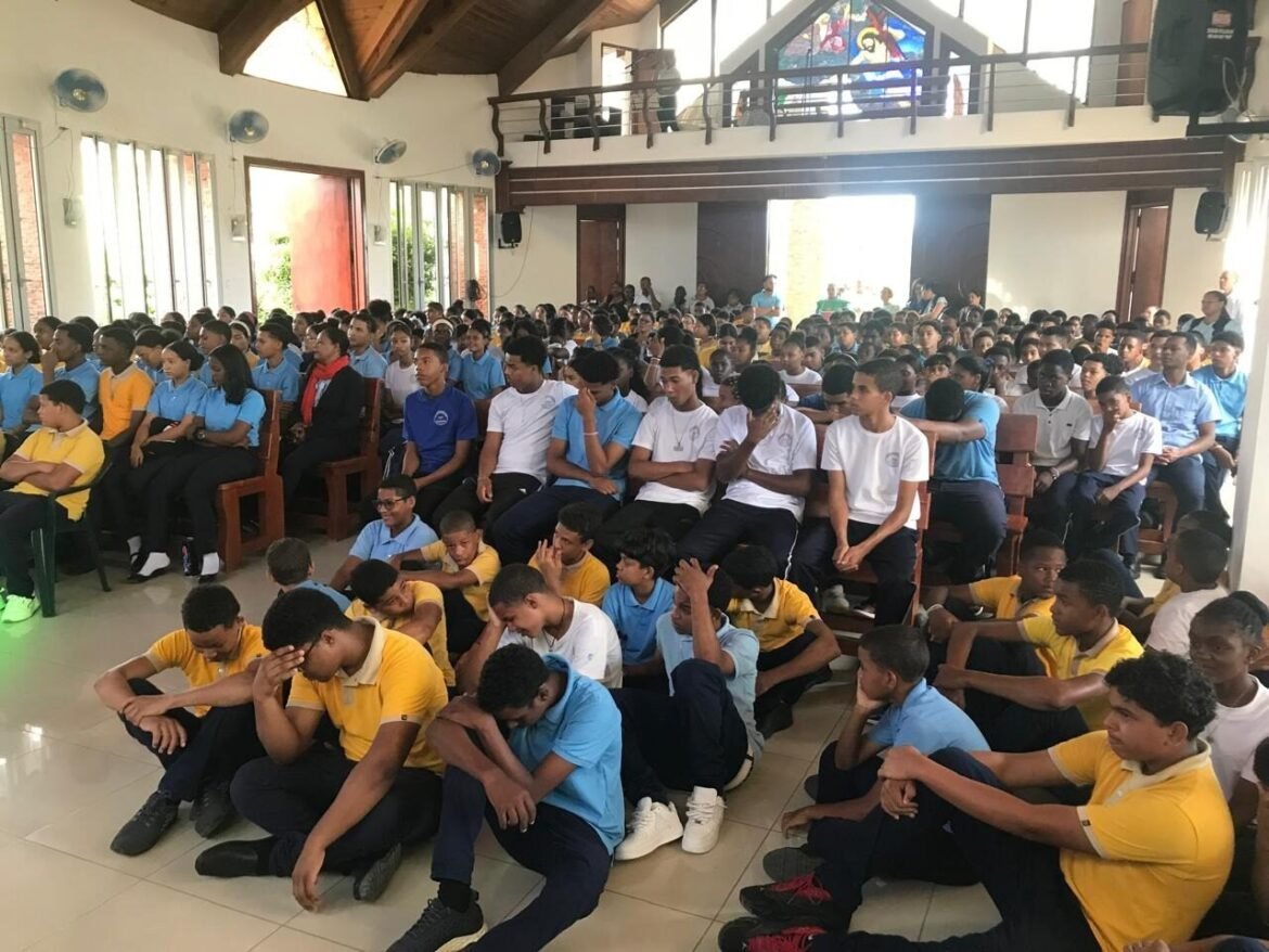 La Eucaristía tuvo lugar en la Parroquia San Ramón, fue presidida por el Párroco, Pedro González, a la misma asistió la Directora del centro educativo, Yngris Bueno, maestros, estudiantes, la comunidad educativa, así como personalidades invitadas.