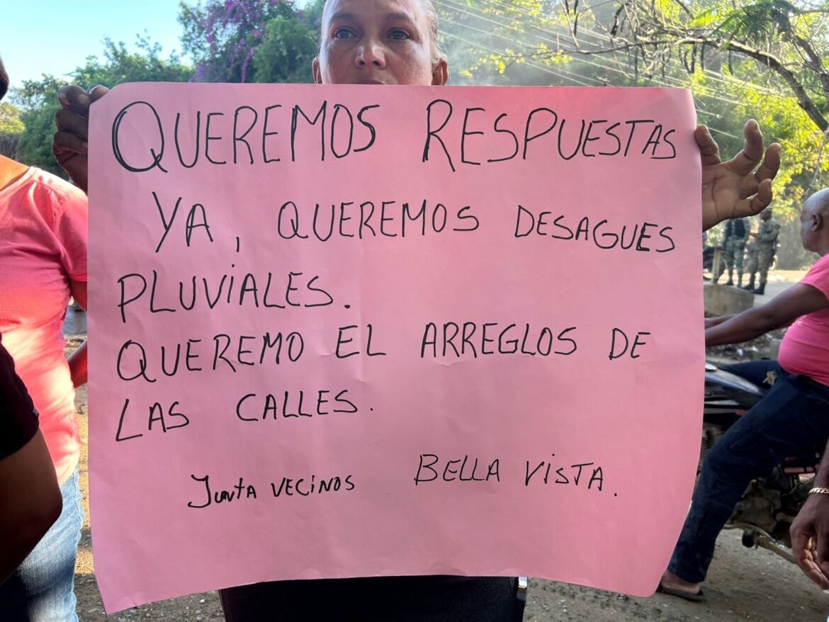 Hoy, los moradores del sector Bella Vista salieron a la calle para exigir la instalación de un sistema de Desagües Pluviales y un abastecimiento continuo de agua potable, dos carencias que, aseguran, se han prolongado por años sin respuesta de las autoridades locales. Bajo el liderazgo de Clavel González, presidenta de la junta de vecinos, decenas de familias alzan la voz para visibilizar las consecuencias que enfrentan a diario.