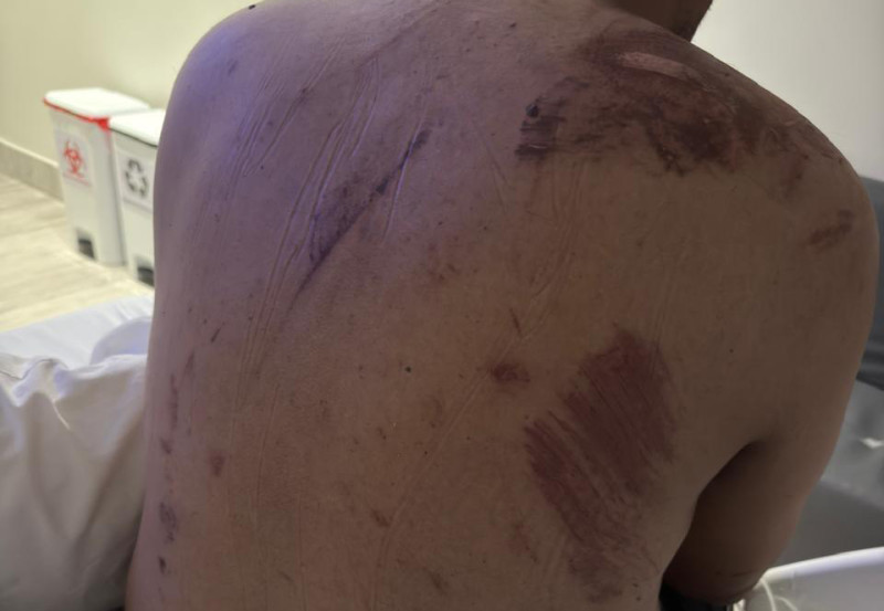 Camilo Peña muestra lesiones en su espalda que sufrió durante el desplome del techo en la discoteca.EXTERNA