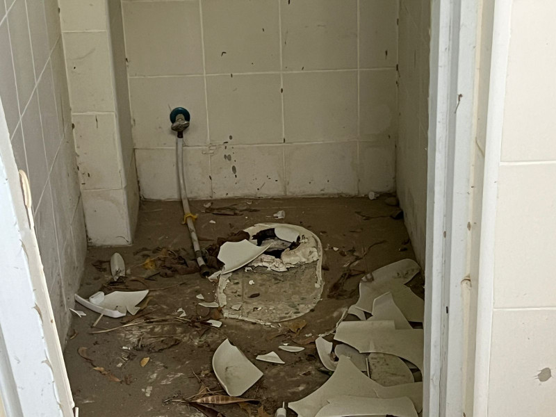 De las llaves que van en los lavamanos ya no queda nada. En este espacio, dividido en dos pabellones, en sus baños solo quedan pedazos en el suelo encementado de los inodoros saqueados junto a ramas que demuestran que está inhabilitado.