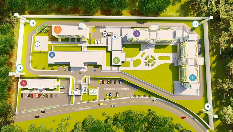 El centro contará con edificio administrativo, área de cacheo, cancha deportiva, comedor, celdas de hombres, torre de vigilancia y celdas de mujeres.