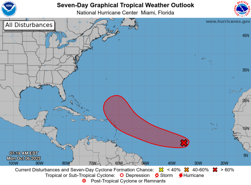 El Instituto Dominicano de Meteorología (Indomet) informó este lunes que se mantiene vigilante a una zona de baja presión ubicada a varios cientos de kilómetros al suroeste de las islas de Cabo Verde que posee un 50% de probabilidades de convertirse en ciclón tropical en los próximos dos días.