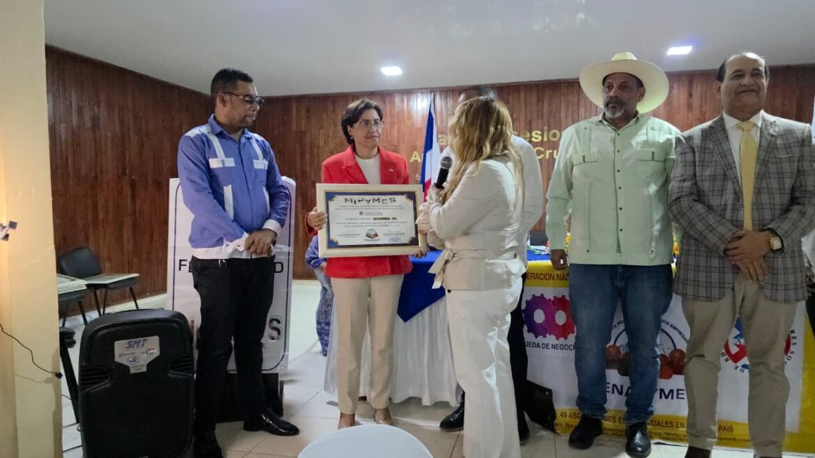 Dajabón, República Dominicana.- La Federación Nacional de Pequeños y Medianos empresarios (FENAPYMED), junto a la Asociación de Pequeños, Medianos y Microempresarios de esta ciudad fronteriza, Reconocieron a la Gobernadora provincial, Licenciada Severina Gil Carreras, por sus aportes en defensa del sector empresarial.