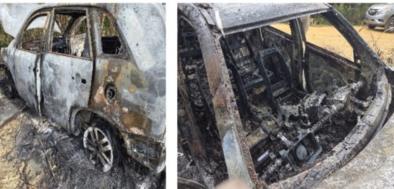 El vocero de la PN, Diego Pesqueira, dijo que la yipeta marca Kia Sorento, negra, fue quemada en la comunidad de Guerra, en Santo Domingo Este.
