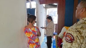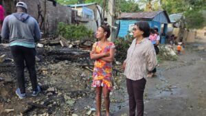 Dajabón, República Dominicana.– En un esfuerzo conjunto y solidario, la gobernadora provincial de Dajabón, Lic. Severina Gil Carreras, el alcalde del municipio cabecera, Santiago Riverón, y una comisión del Plan Social de la Presidencia realizaron el levantamiento de las pérdidas materiales provocadas por el incendio ocurrido en el sector La Mara, con el objetivo de dar respuesta inmediata a las familias que quedaron sin hogar.