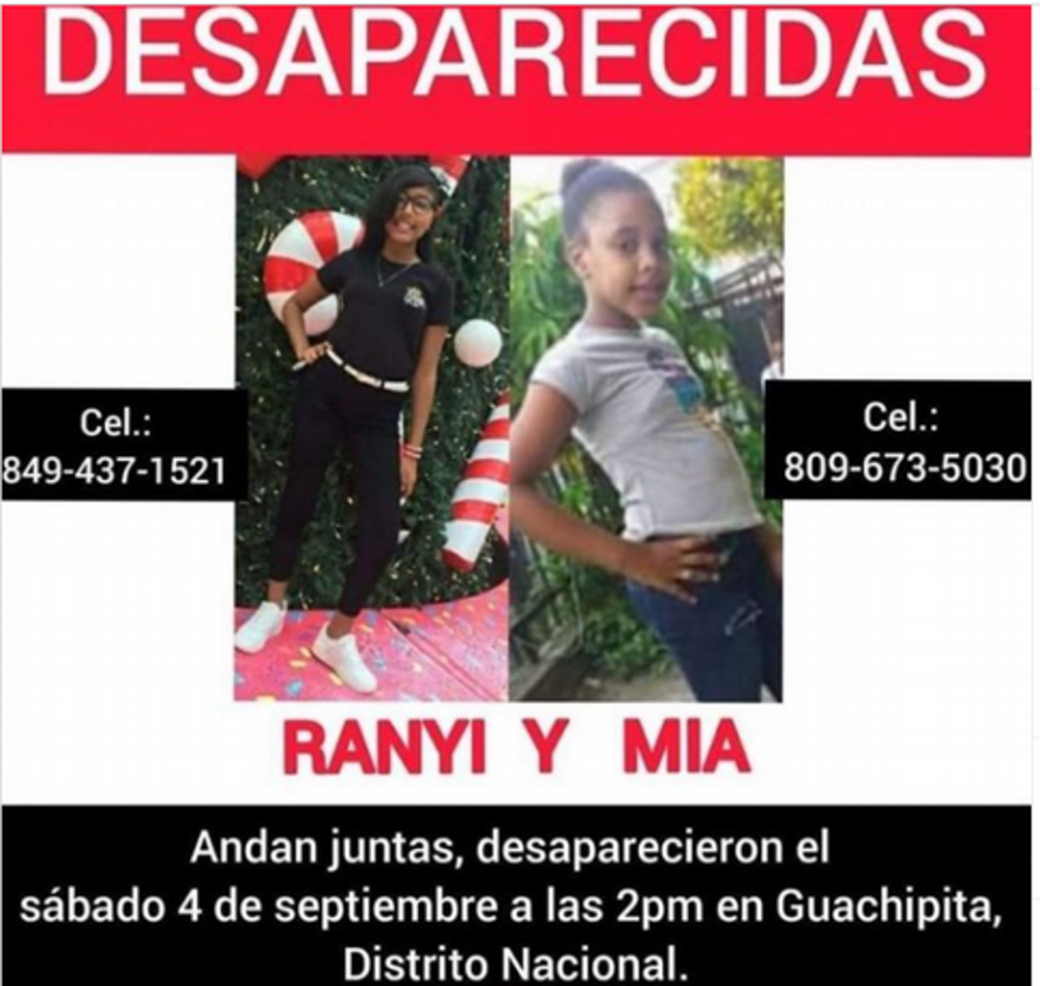 Dos menores fueron reportadas desaparecidas por sus familiares el pasado sábado en el sector de Guachupita, Distrito Nacional.