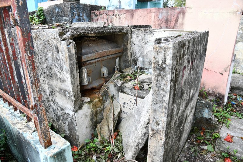 A medida que un equipo de este medio se adentró en el camposanto, los nichos abiertos y desprendidos brindan la bienvenida, un mal presente en otros cementerios visitados.