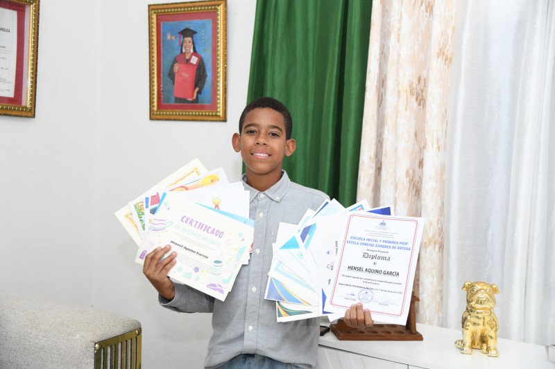 El estudiante Hensel Aquino García es un adolecente que desde sus primeros años dio muestras de sus habilidades para hablar con fluidez y expresar su sentir y su modo de pensar ante los demás sin miedo.
