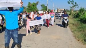 «Nos prometieron arreglarla, pero aquí seguimos, tragando polvo y sintiendo que no importamos», expresó Rosa Méndez, madre de tres, mientras sostenía una pancarta con la frase: «Necesitamos carretera«.