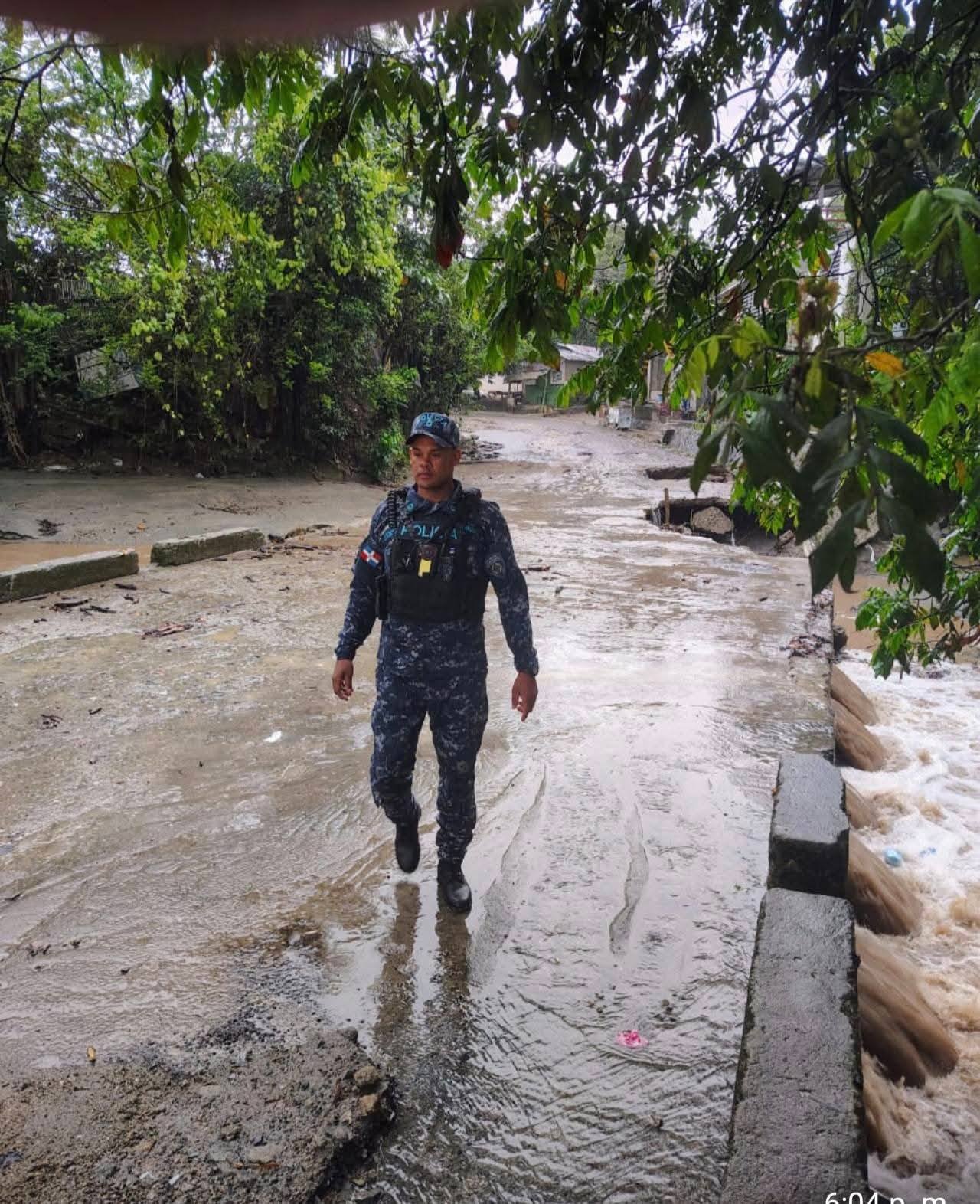 Villa Los Almácigos, Santiago Rodríguez, R.D.– Miembros de la Policía Preventiva se mantienen desplegados en el puente de La Ceiba y el puente Los Almácigos, tras registrarse un colapso parcial en una de estas estructuras a causa de las fuertes lluvias ocurridas la tarde de este miércoles.