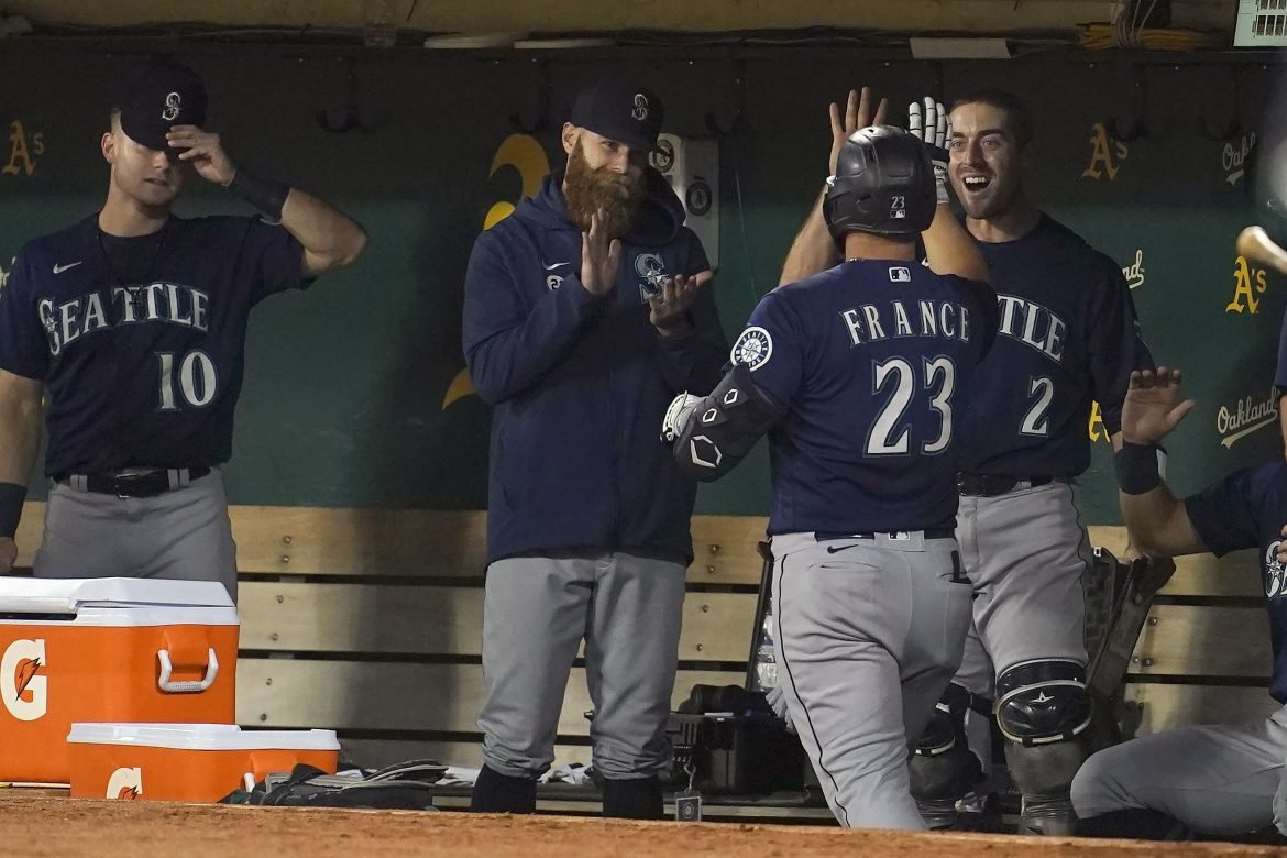 Kyle Seager disparó su 35to jonrón de la temporada, Ty France la sacó también del parque y los Marineros de Seattle avanzaron en la carrera por avanzar a los playoff tras imponerse el miércoles 4-1 a los Atléticos de Oakland, su cuarta victoria al hilo.