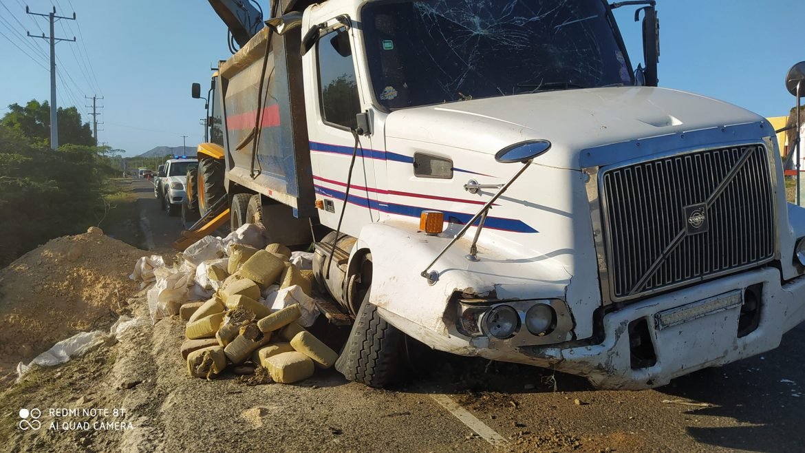 En relación a ese hecho ninguna persona está detenida, trascendió que el vehículo en el día de ayer en el referido tramo carretero sufrió una volcadura y que nadie lo había ido a rescatar por lo que los miembros del Dicrim en Montecristi, iniciaron su labor de inteligencia hasta ocupar la droga cuyo peso no está especificado hasta el momento.