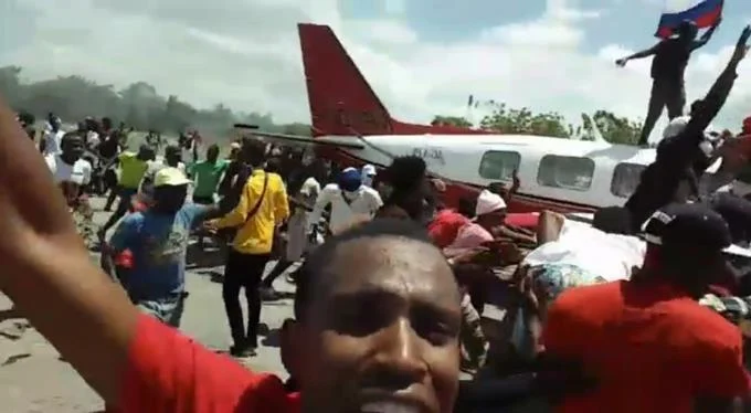 Gedeon Chery, inspector de la Policía Nacional asignado al aeropuerto de Les Cayes, dijo a The Associated Press que un grupo de personas subió a la pista de la terminal, atacó el avión y luego le prendió fuego.