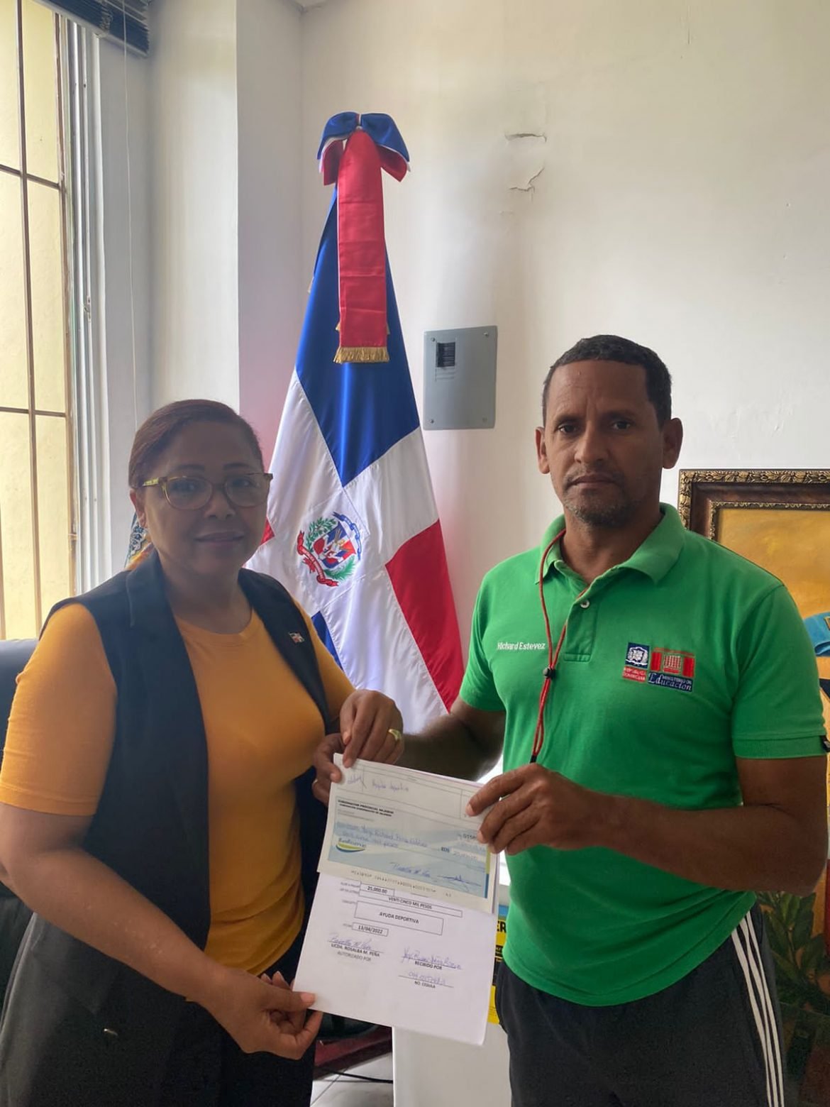 DAJABÓN, República Dominicana.- La gobernadora por esta provincia Licda. Rosalba Milagros Peña, entregó este jueves un cheque de 25,000 pesos a la Asociación de Baloncesto ASOBADA de esta localidad.
