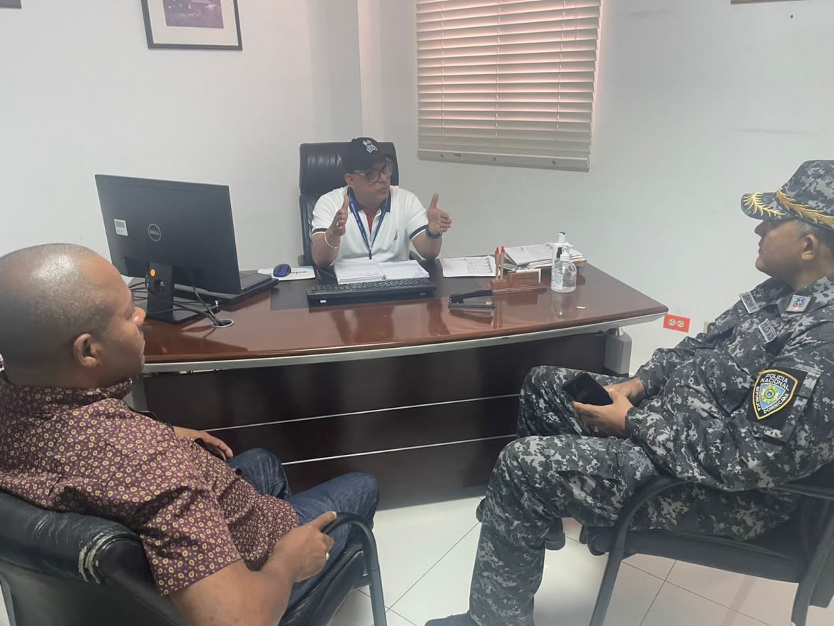 Mao, Valverde.-El director regional Noroeste de la Policía Nacional, general de brigada, licenciado Juan G. Brown Pérez, desarrolló este viernes acciones de proximidad con el Procurador Fiscal del distrito judicial de Valverde y con el gerente comercial, sector Mao de Edenorte, sobre la búsqueda de soluciones comunes inherentes a sus funciones, para el beneficio de la comunidad.