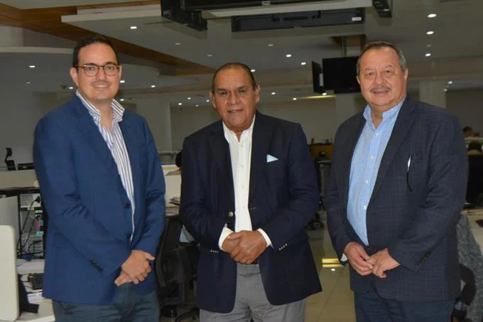 Los señores Christian Blank, gerente general del periódico Prensa Libre, de Guatemala; Miguel Franjul, director de Listín Diario y Salvador Guay, gerente de Editorial Sur, durante la visita de cortesía que giraron a la redacción deListín Diario, donde intercambiaron opiniones y experiencias con los principales ejecutivos del decano de la prensa dominicana.