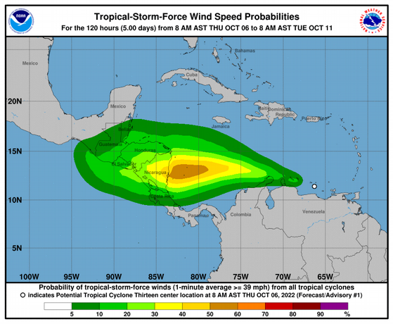 Se formó este jueves el potencial ciclón tropical 13 en el Caribe, mar adentro frente a las costas de Venezuela, camino de Centroamérica.