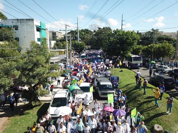 La marcha que tiene como destino final el Congreso Nacional fue convocada en demanda primordial de una nueva Ley de Seguridad Social, la eliminación de las Administradoras de Riesgos de Salud (ARS) y las Administradoras de Fondos de Pensiones (AFP).