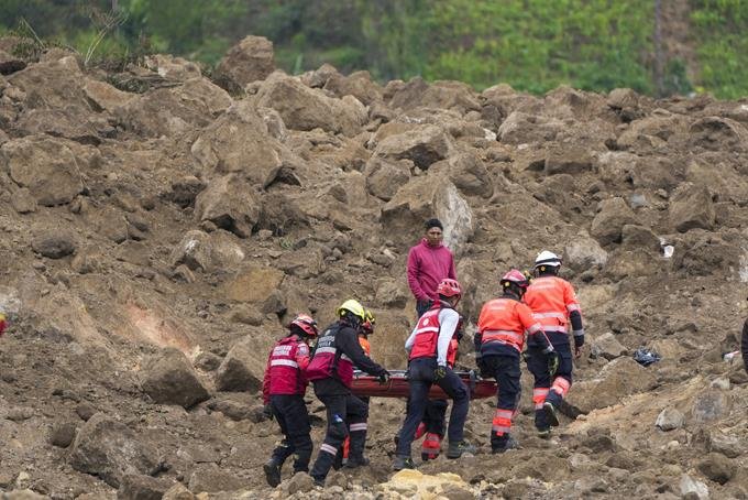 Hasta ahora han desenterrado una docena de cuerpos sepultados por el corrimiento de tierra, pero se desconoce el número exacto que pueden seguir debajo, ya que algunas viviendas de la zona afectada ya habían sido desalojadas previamente ante las advertencias de que podía darse este fenómeno.