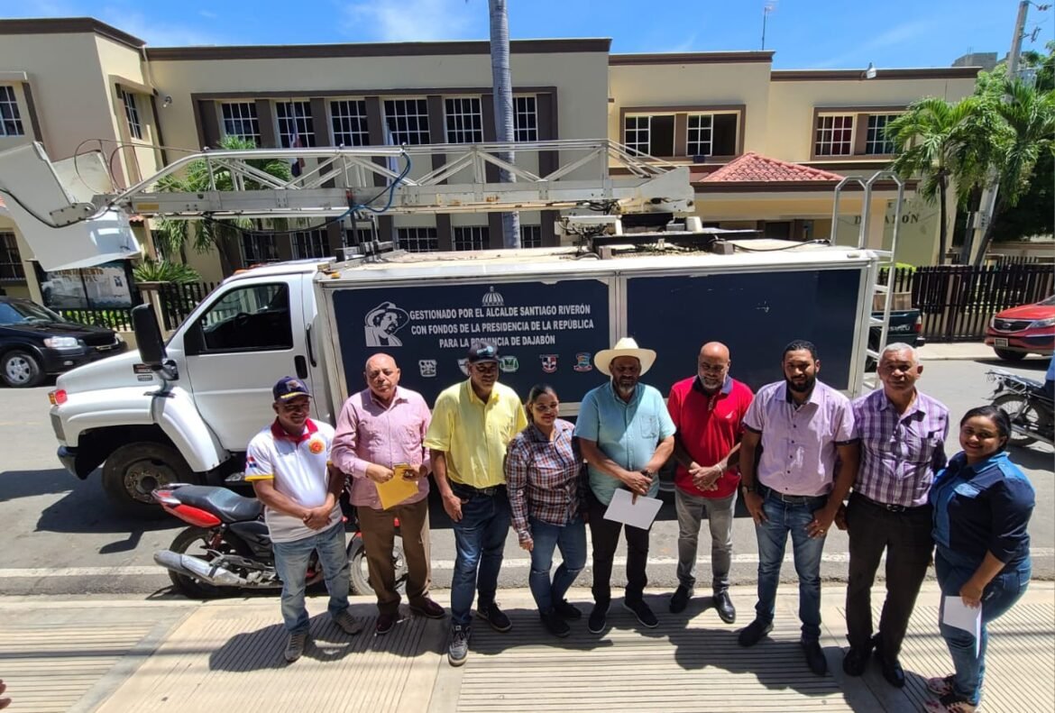 Dajabón RD; El alcalde Santiago Riverón entregó el camión canasta, comprado con los recursos adquiridos a través del gobierno central a los alcaldes para participar como invitados a la Gran Parada Dominicana, Riverón pensando en la gran necesidad que tenía el municipio de un camión canasta ante la falta de iluminación le hizo la propuesta a los demás incumbentes y los mismo aceptaron.