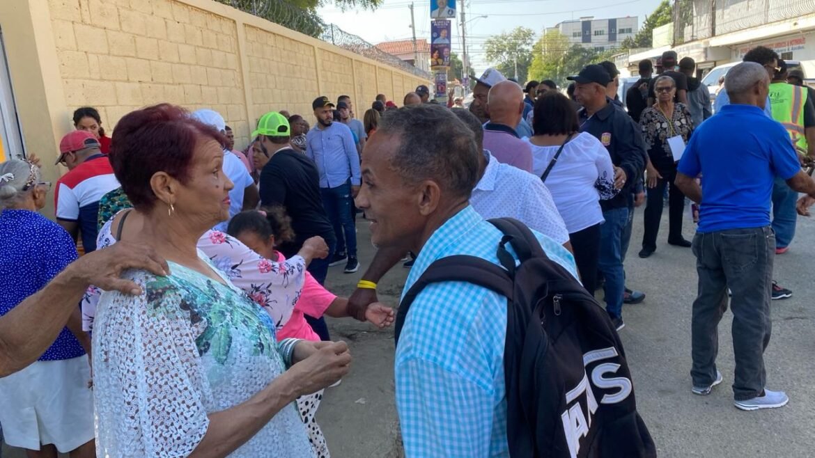 Con gafetes enormes hay una gran cantidad de activistas en los alrededores de los recintos donde opera los colegios electorales.